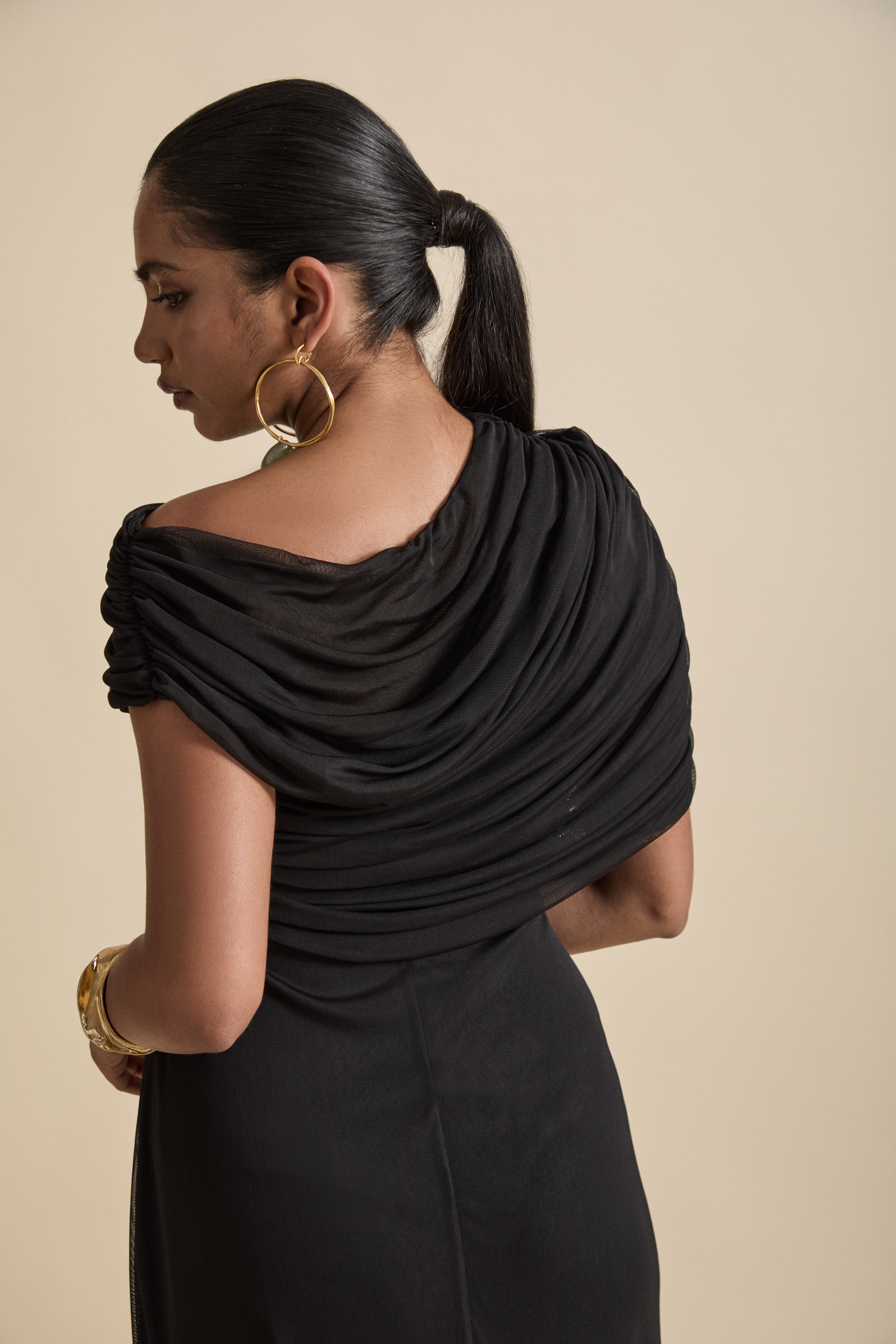 Constructed in locally sourced, premium stretch drape jersey for defined luxury eveningwear.