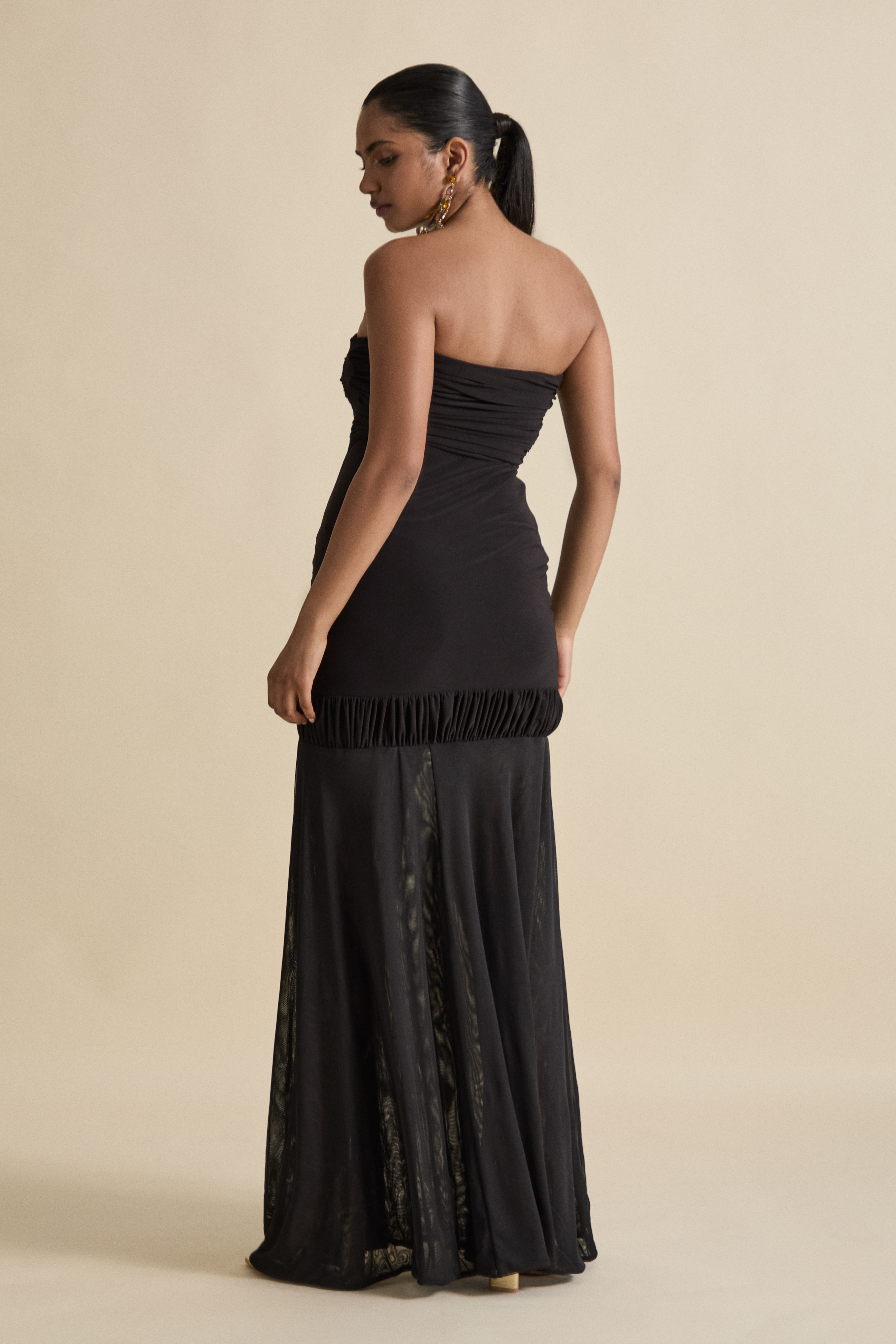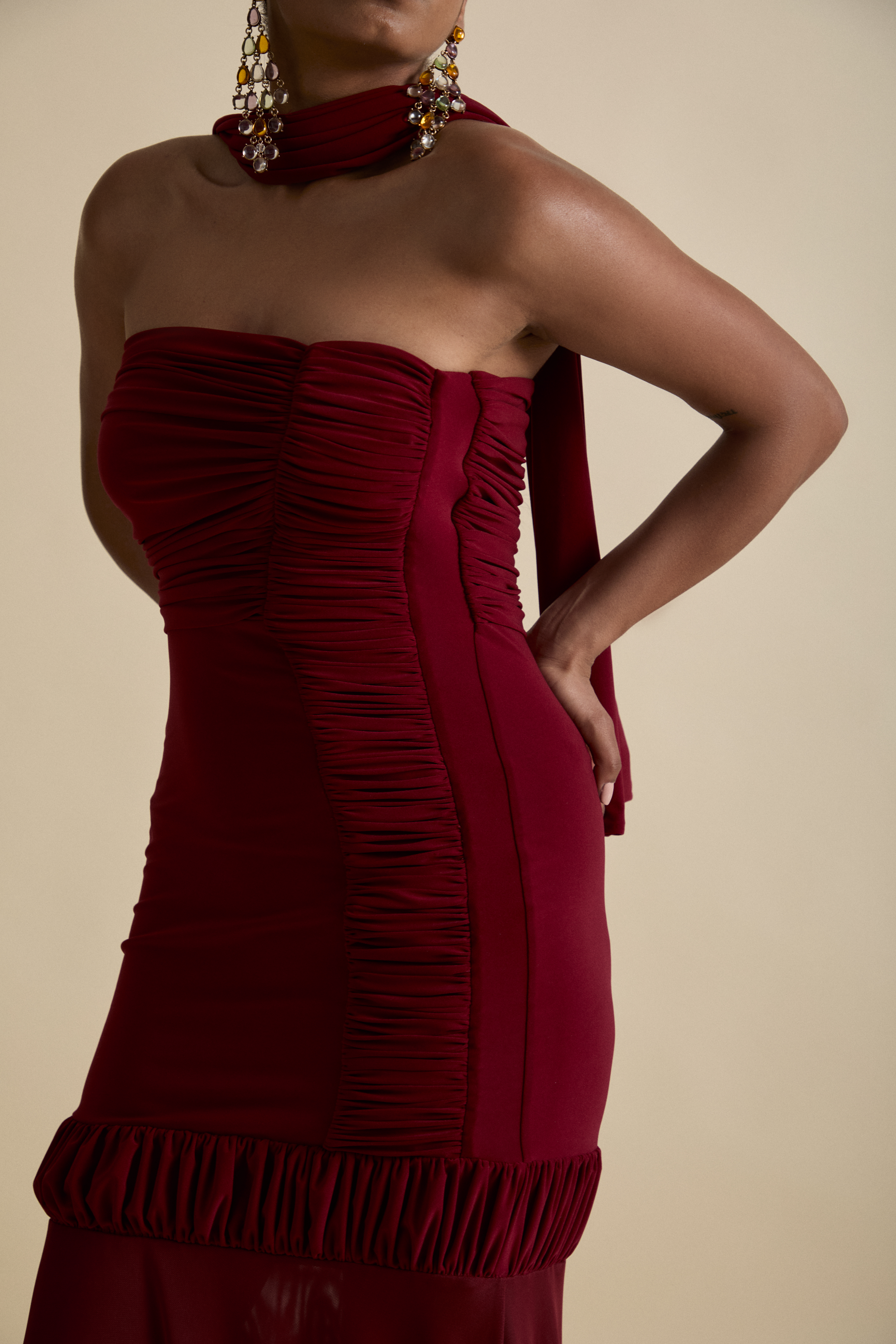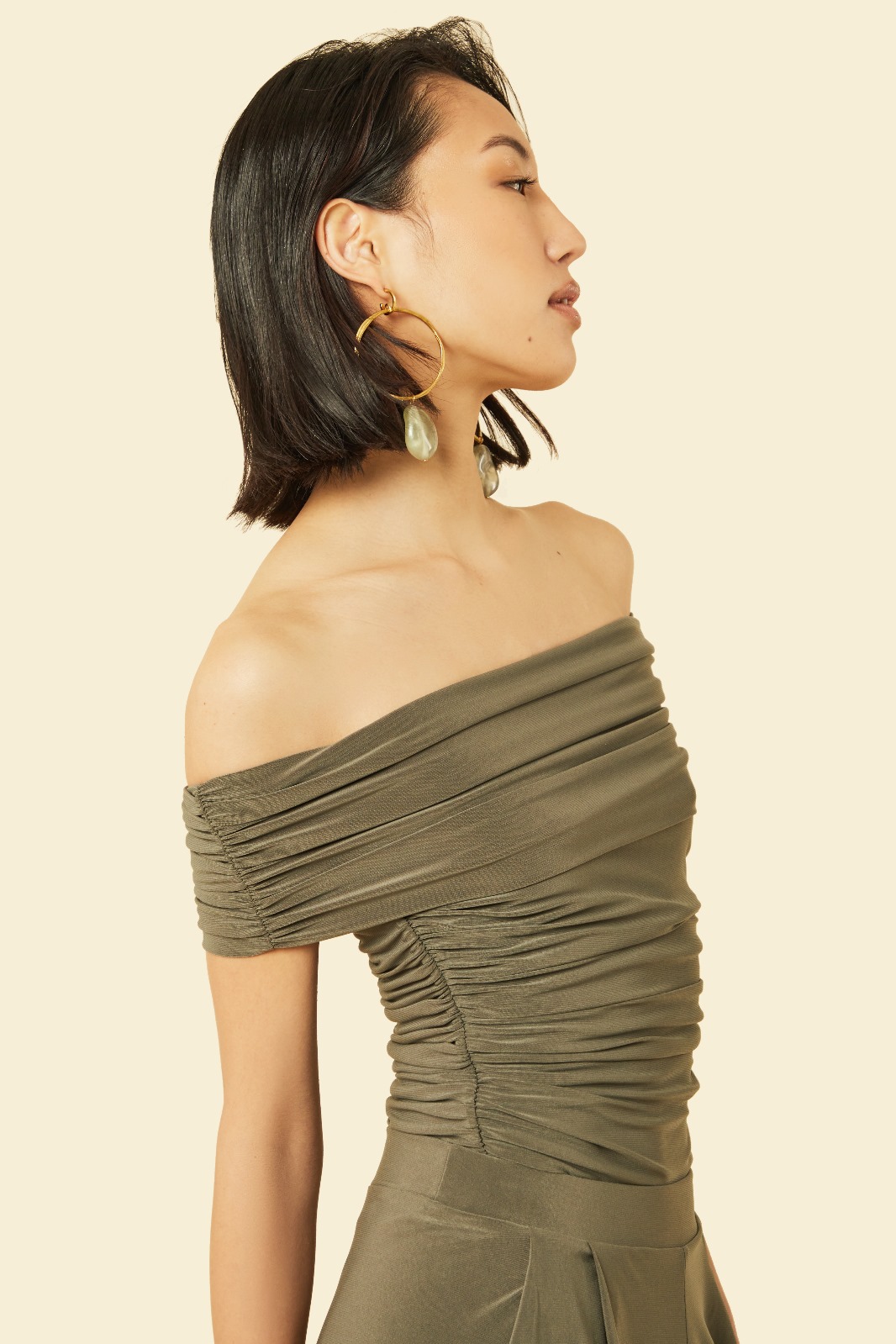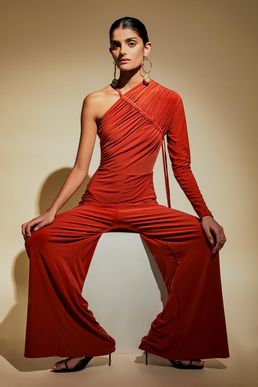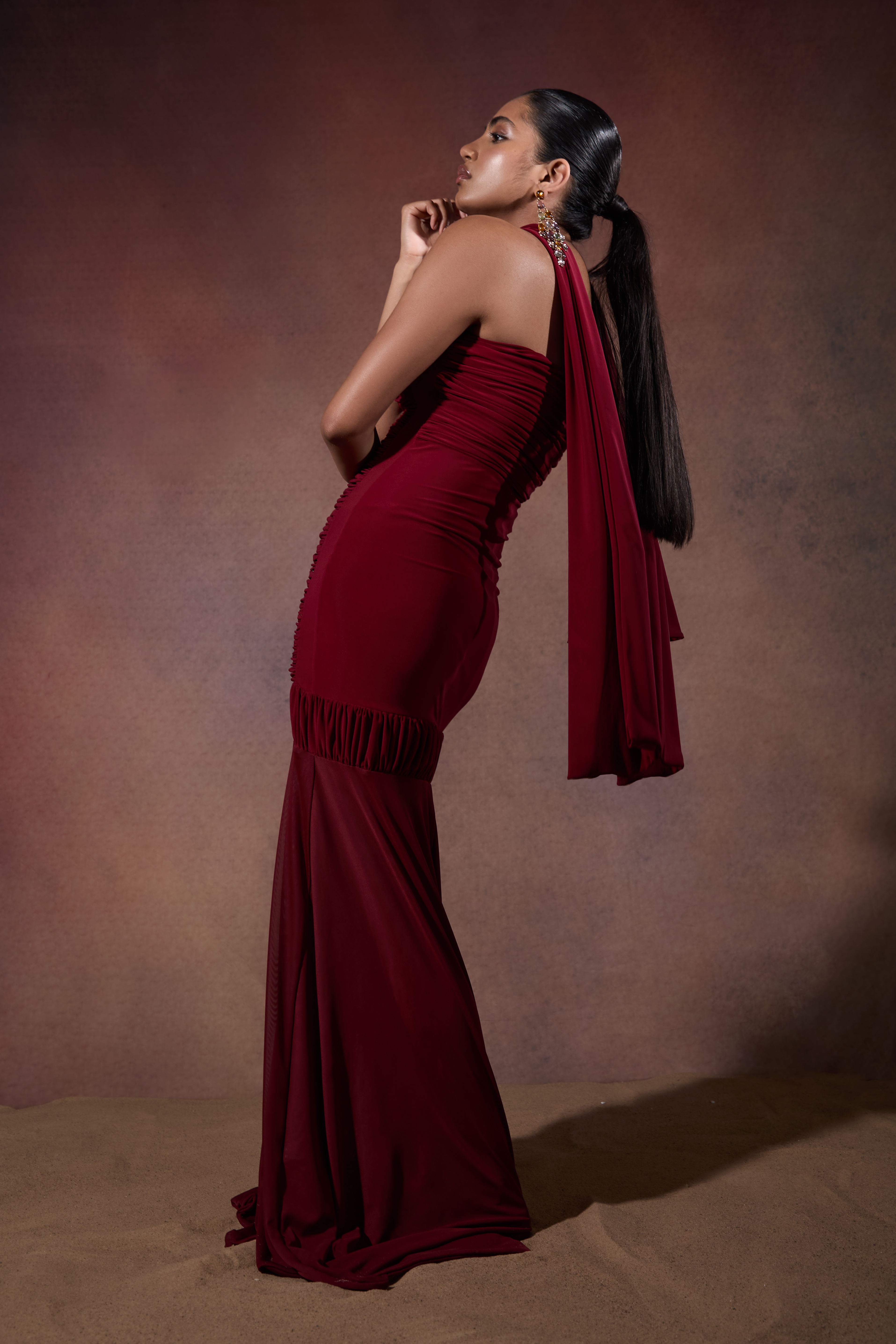Constructed in locally sourced, premium stretch drape jersey for defined luxury evening wear.