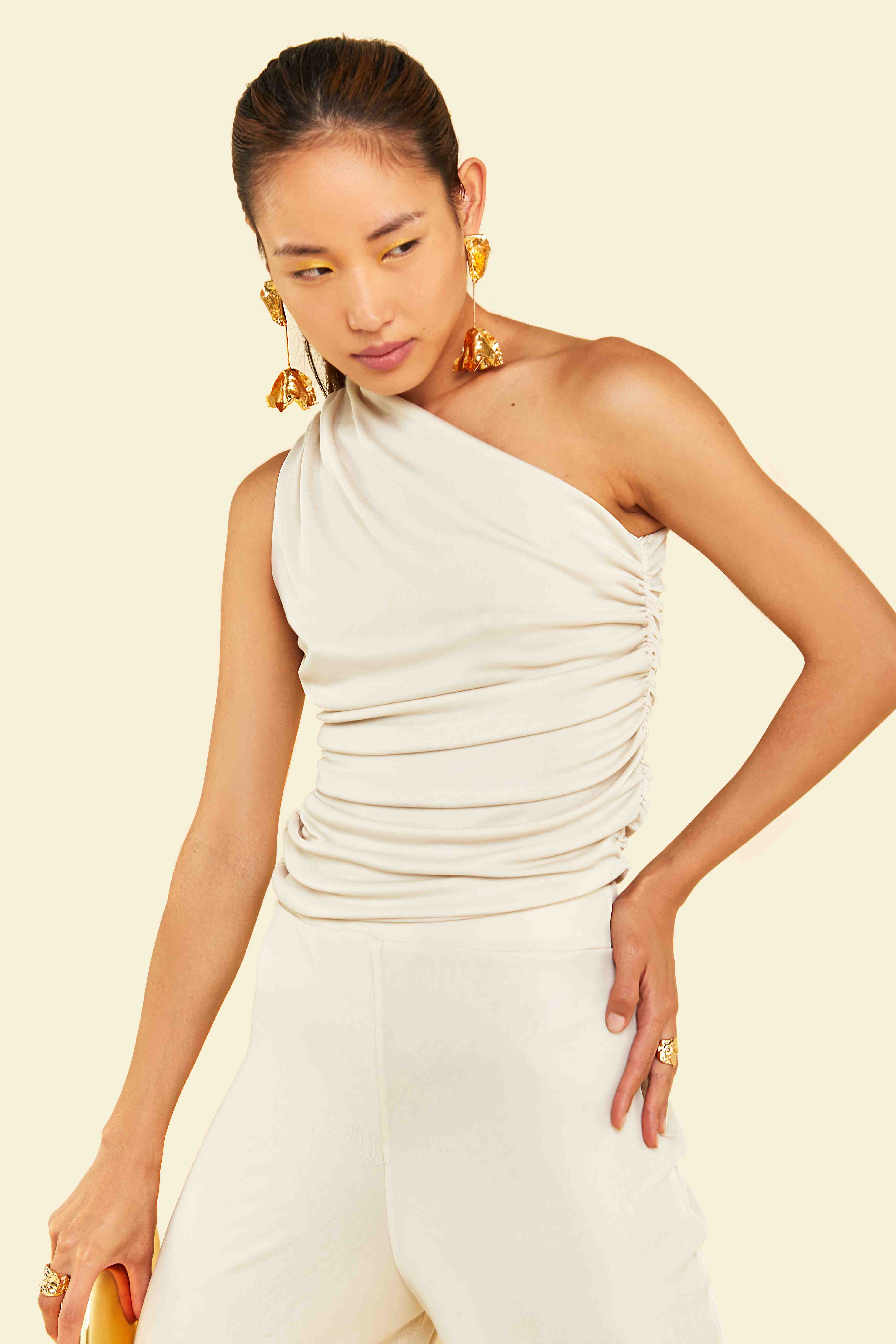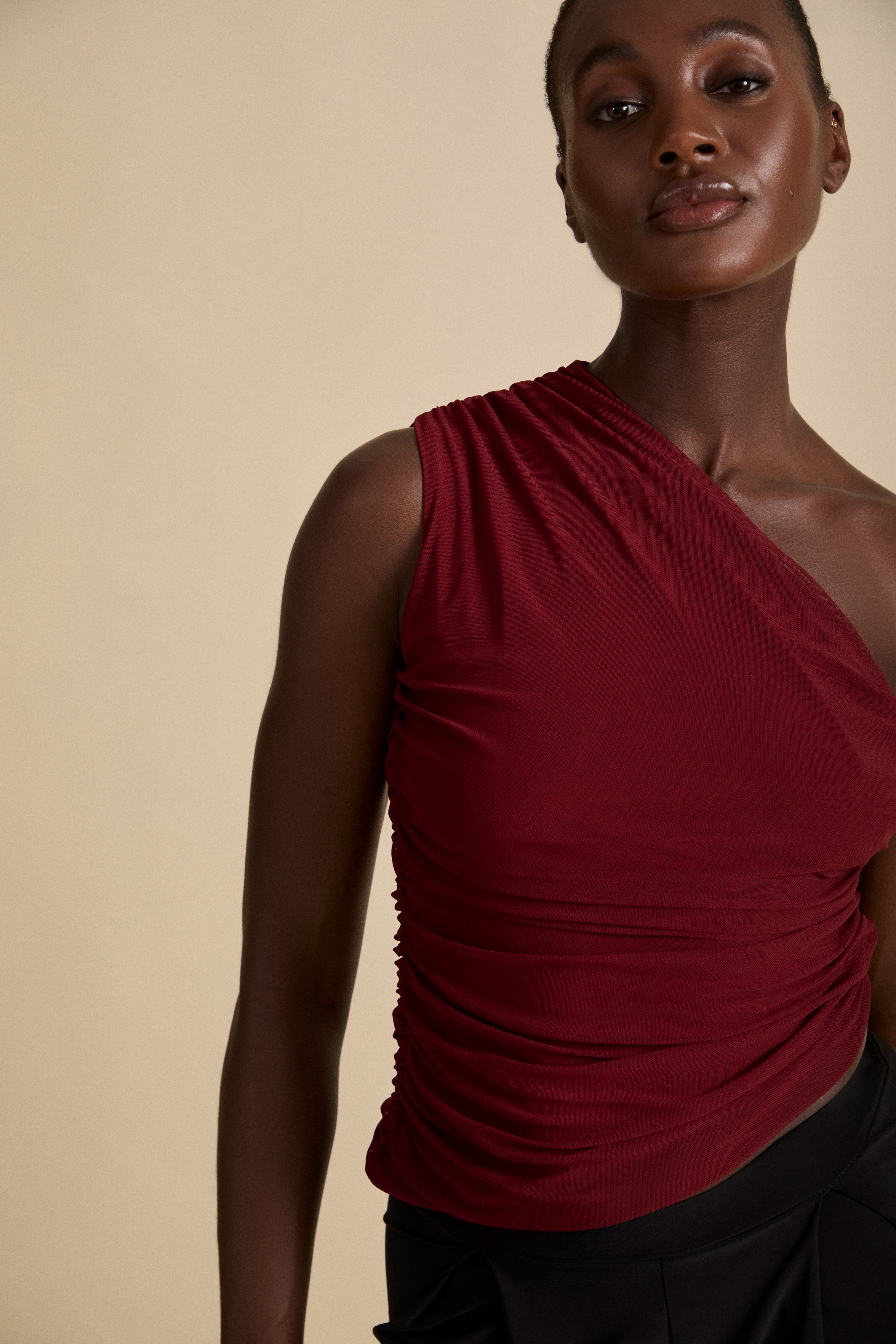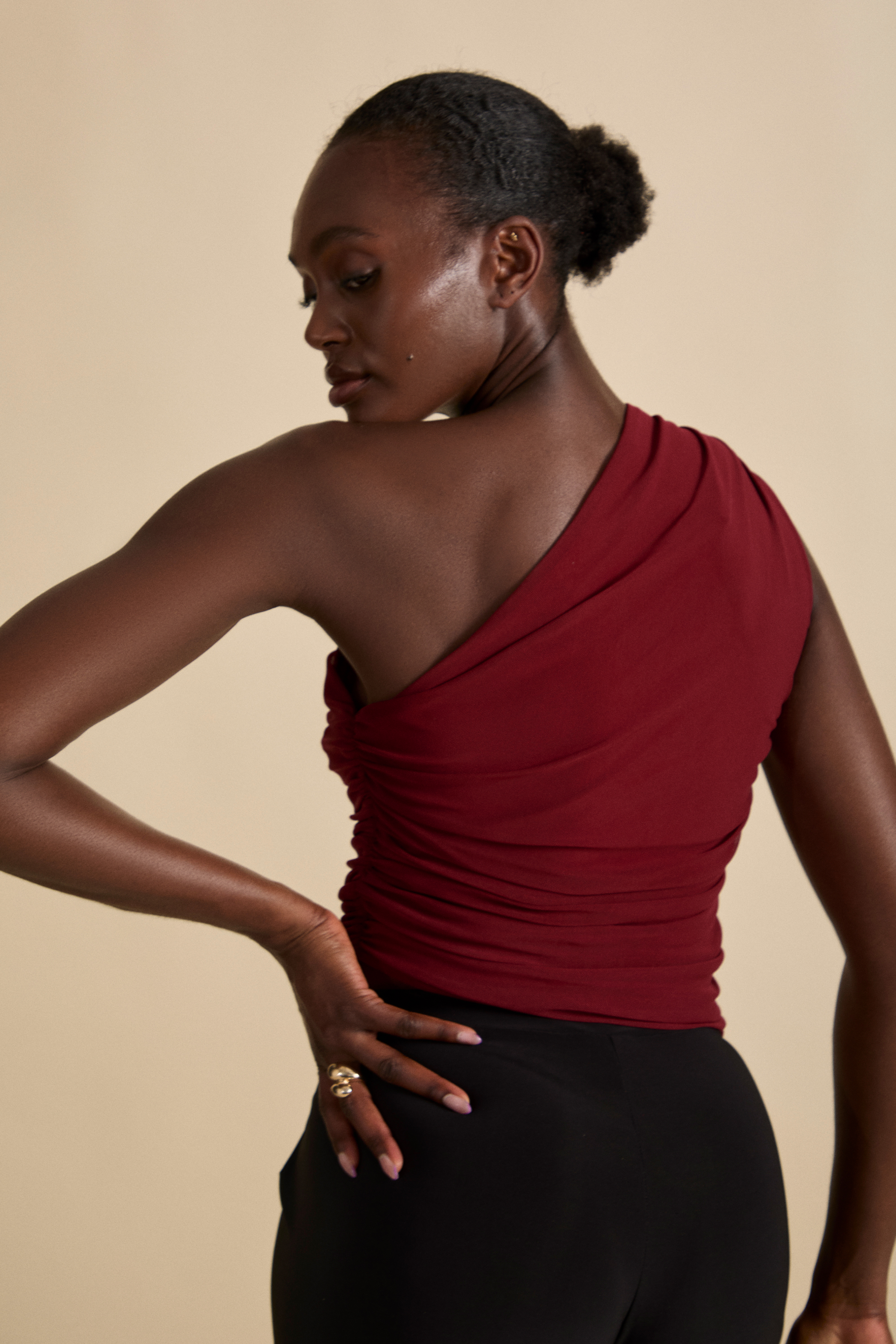 The Aura Top is created for refined femininity, with a beautiful one shoulder ruched detail.