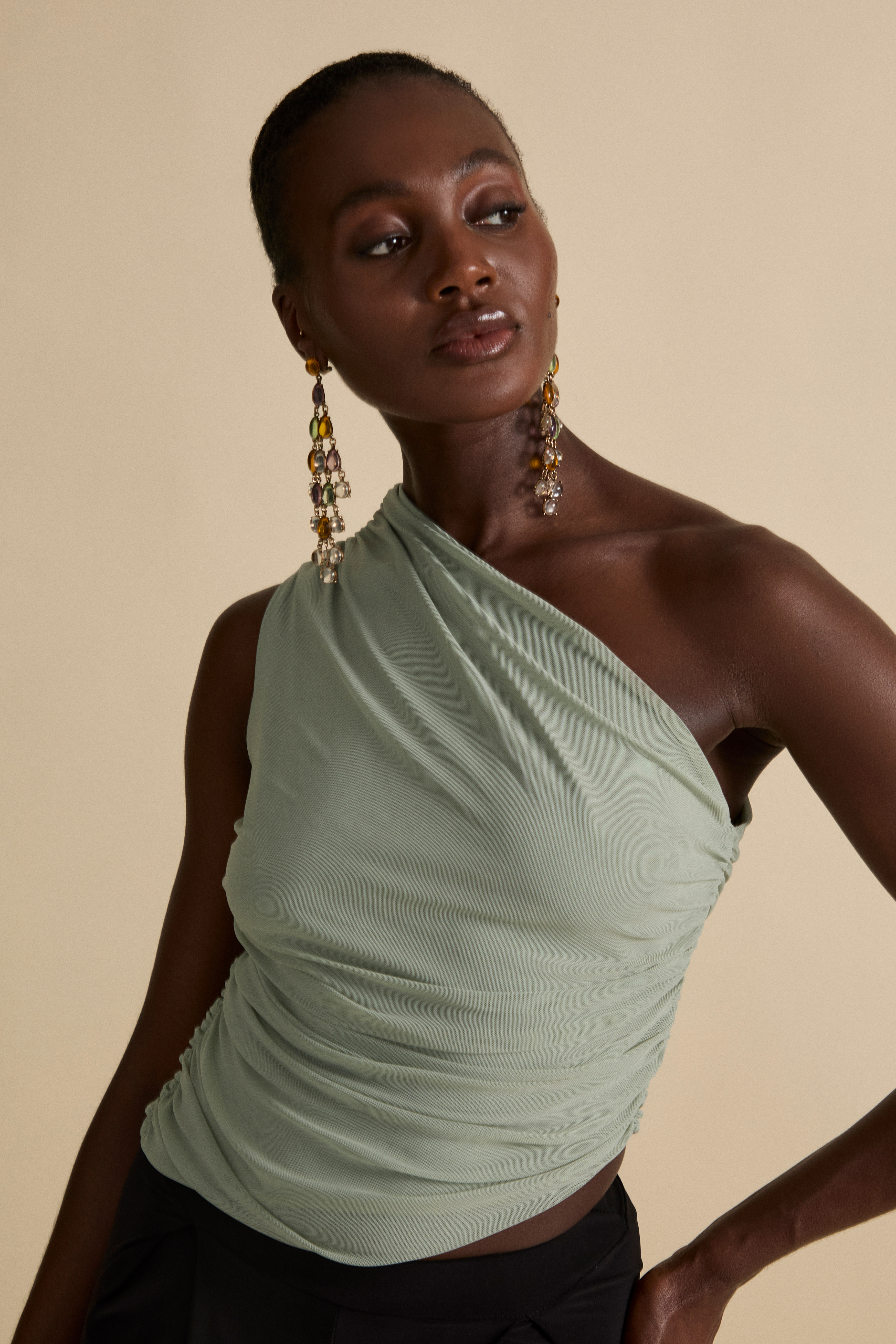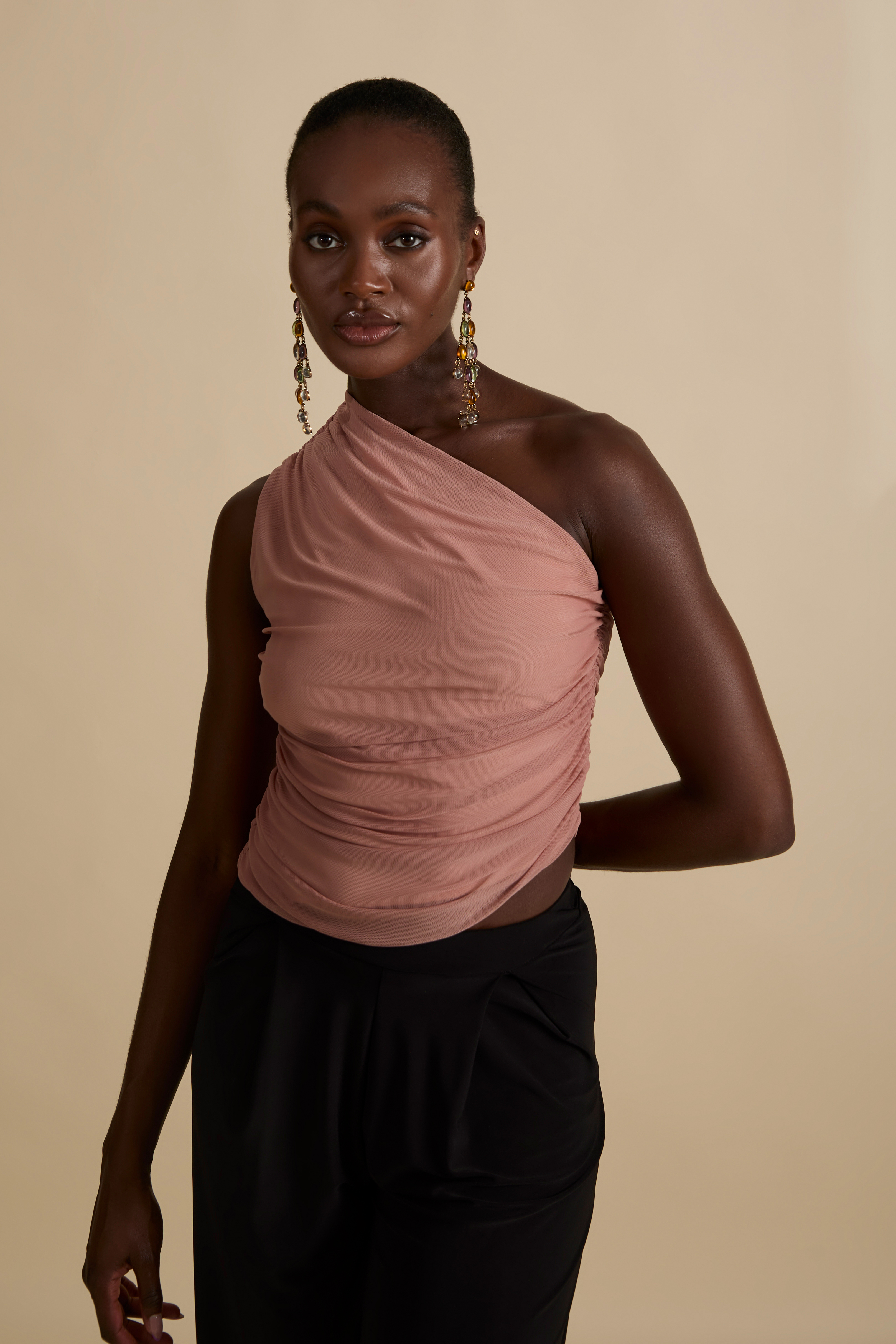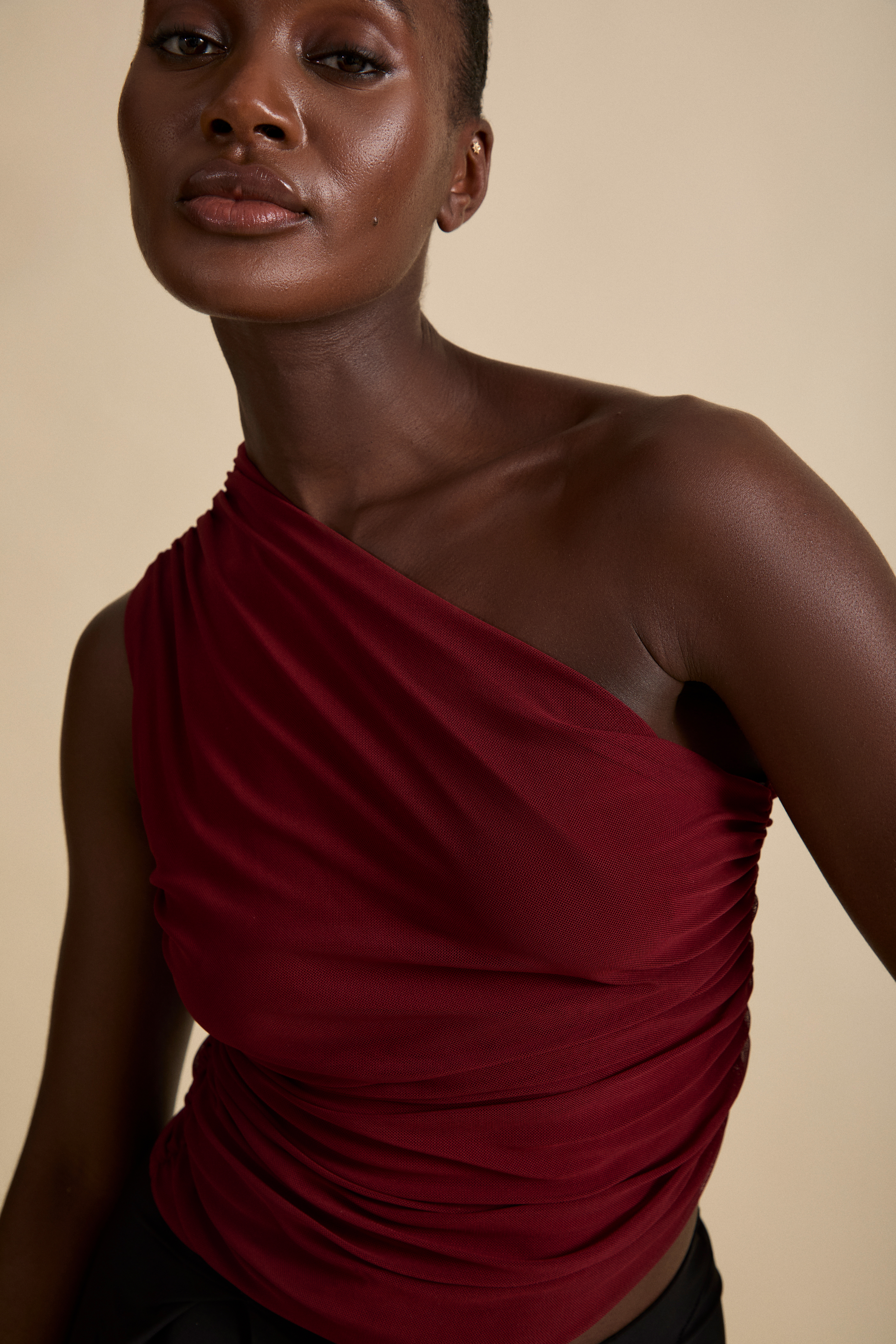 The Aura Top is created for refined femininity, with a beautiful one shoulder ruched detail.