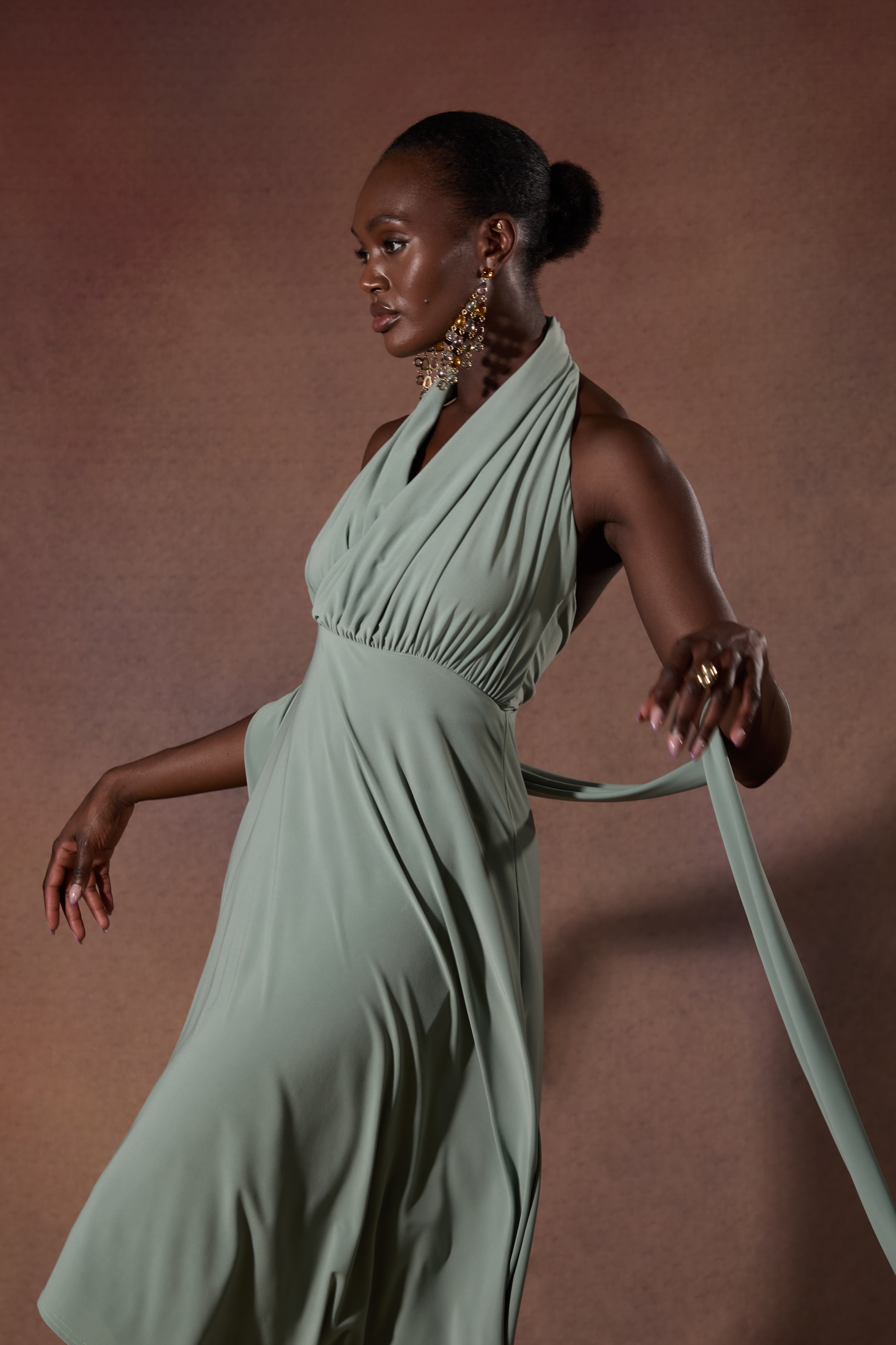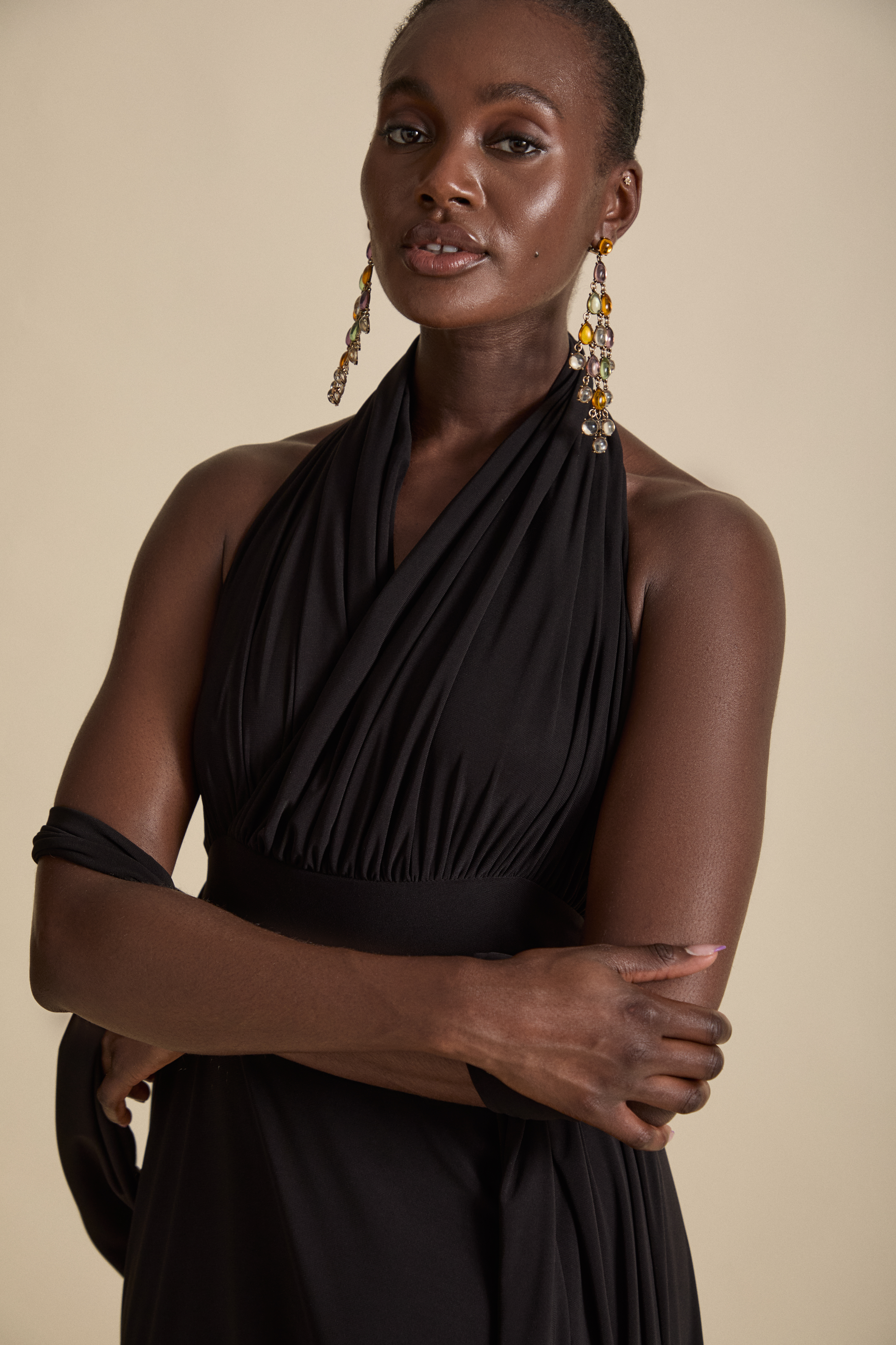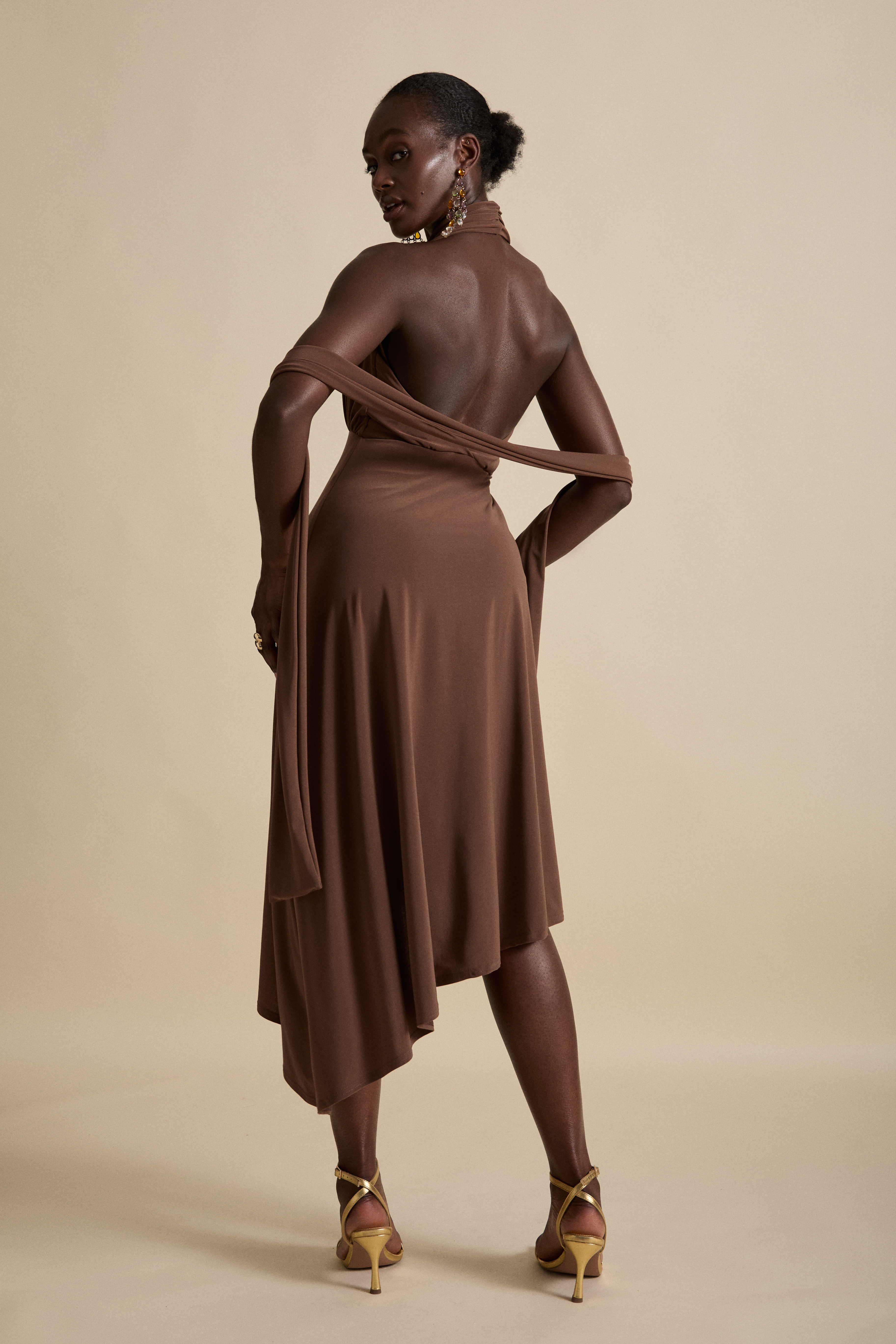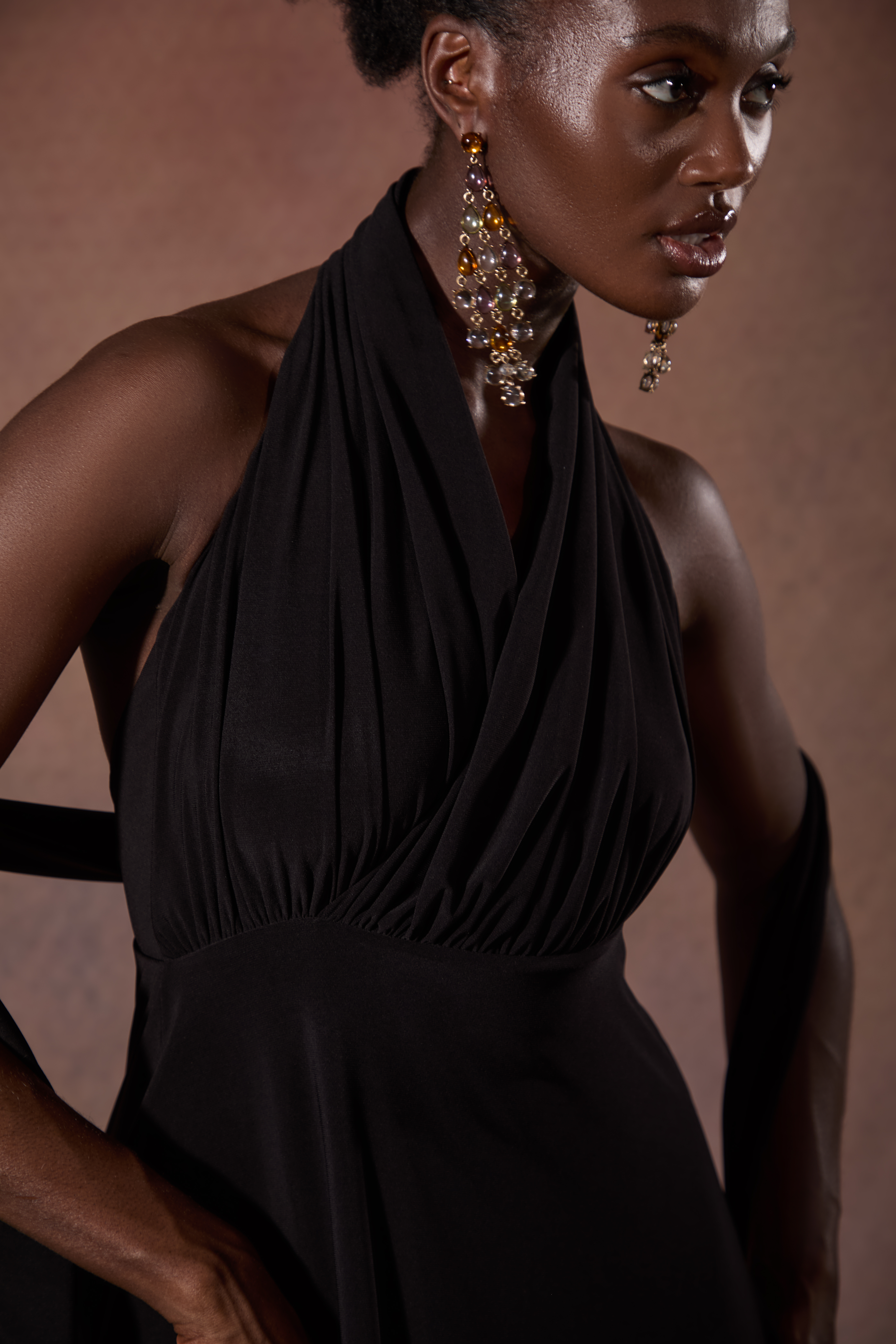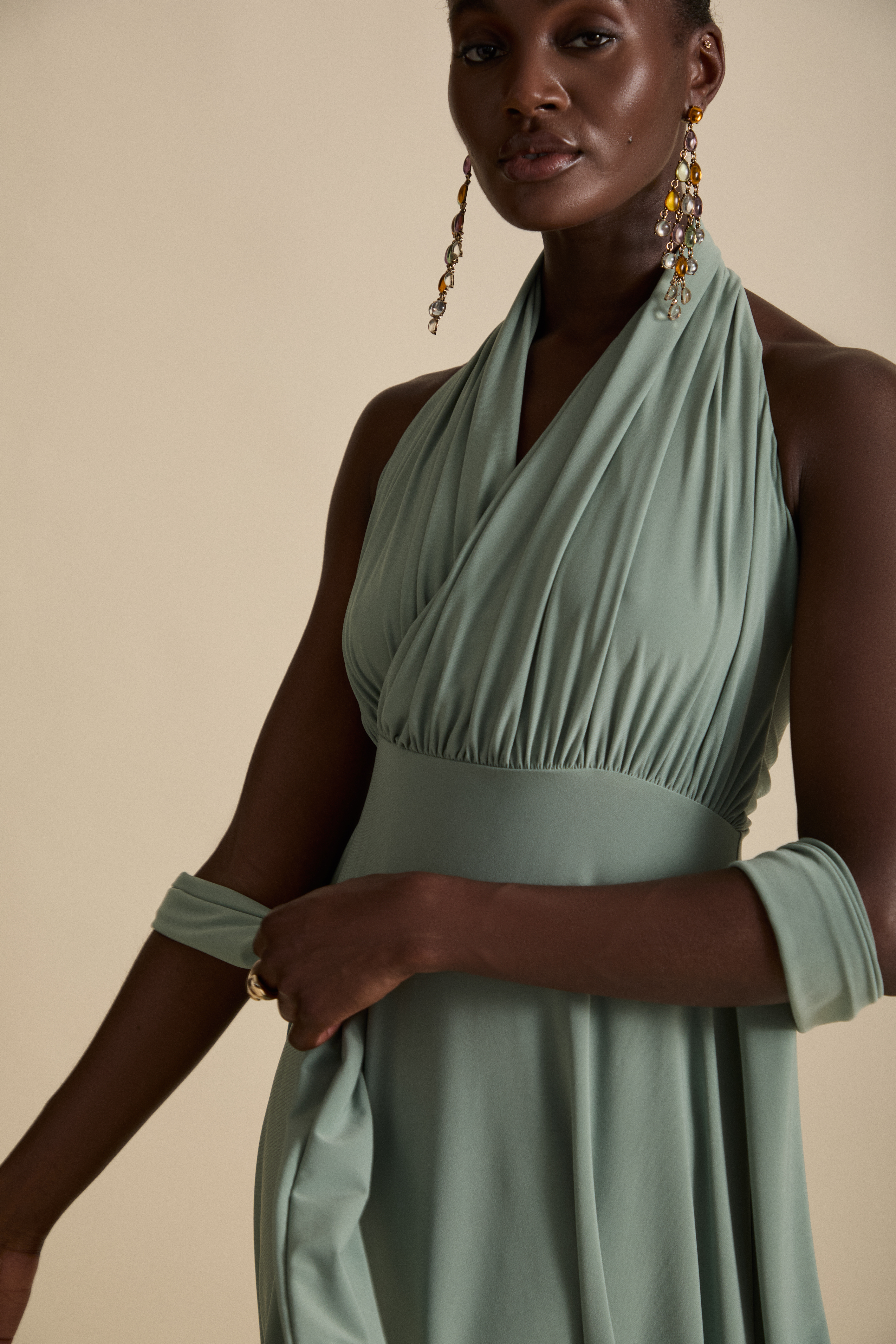 Constructed in locally sourced, premium stretch drape jersey for defined luxury eveningwear.