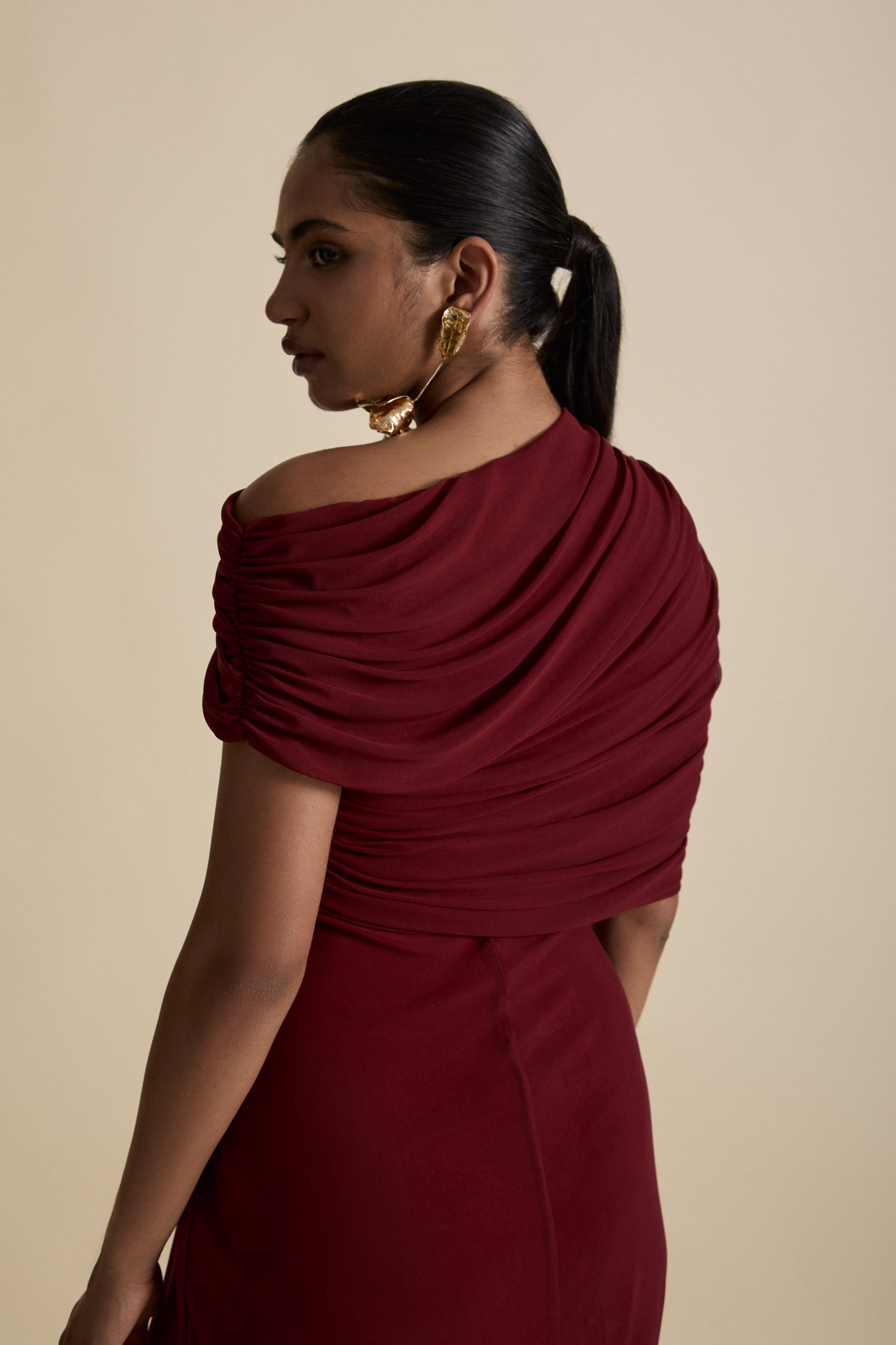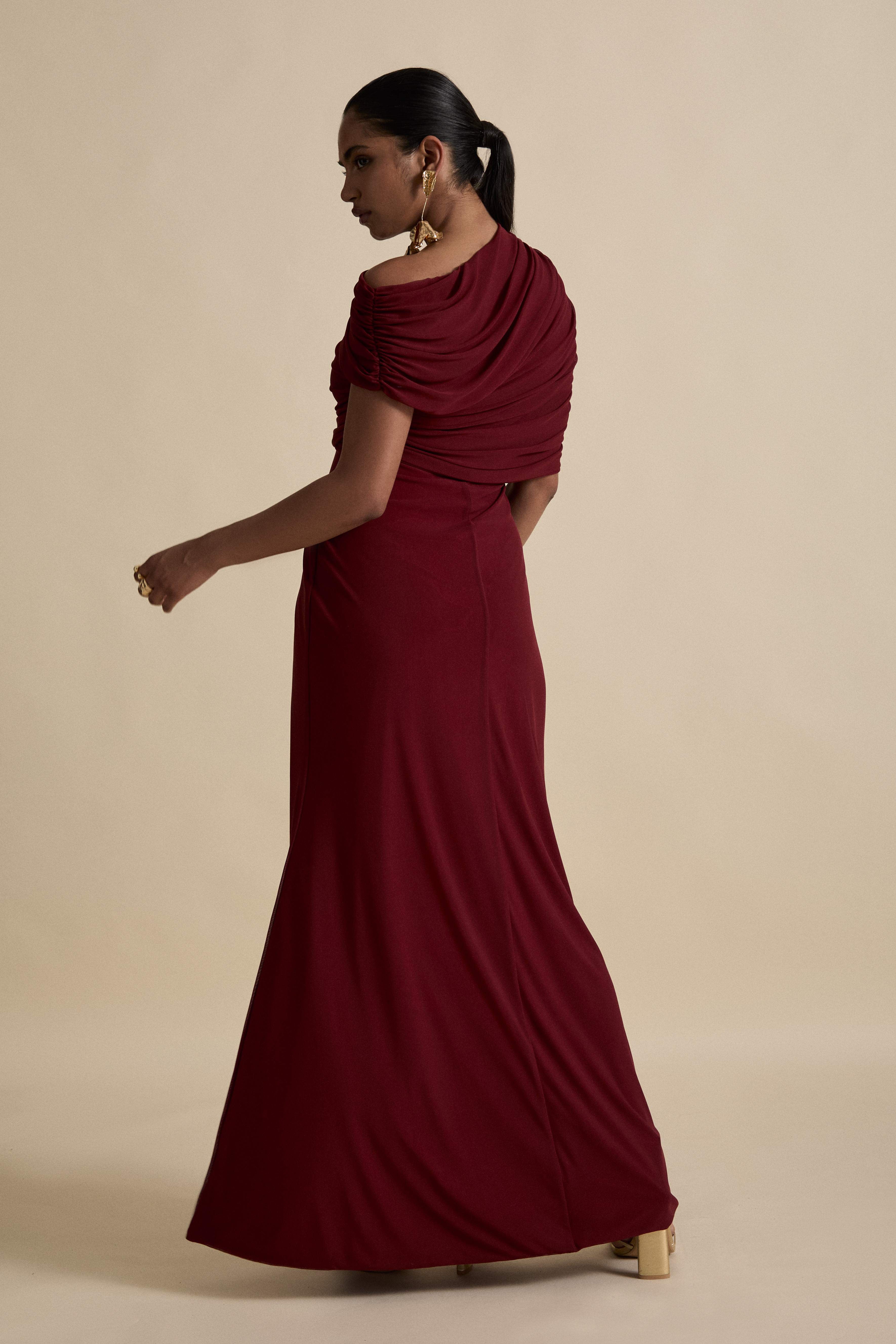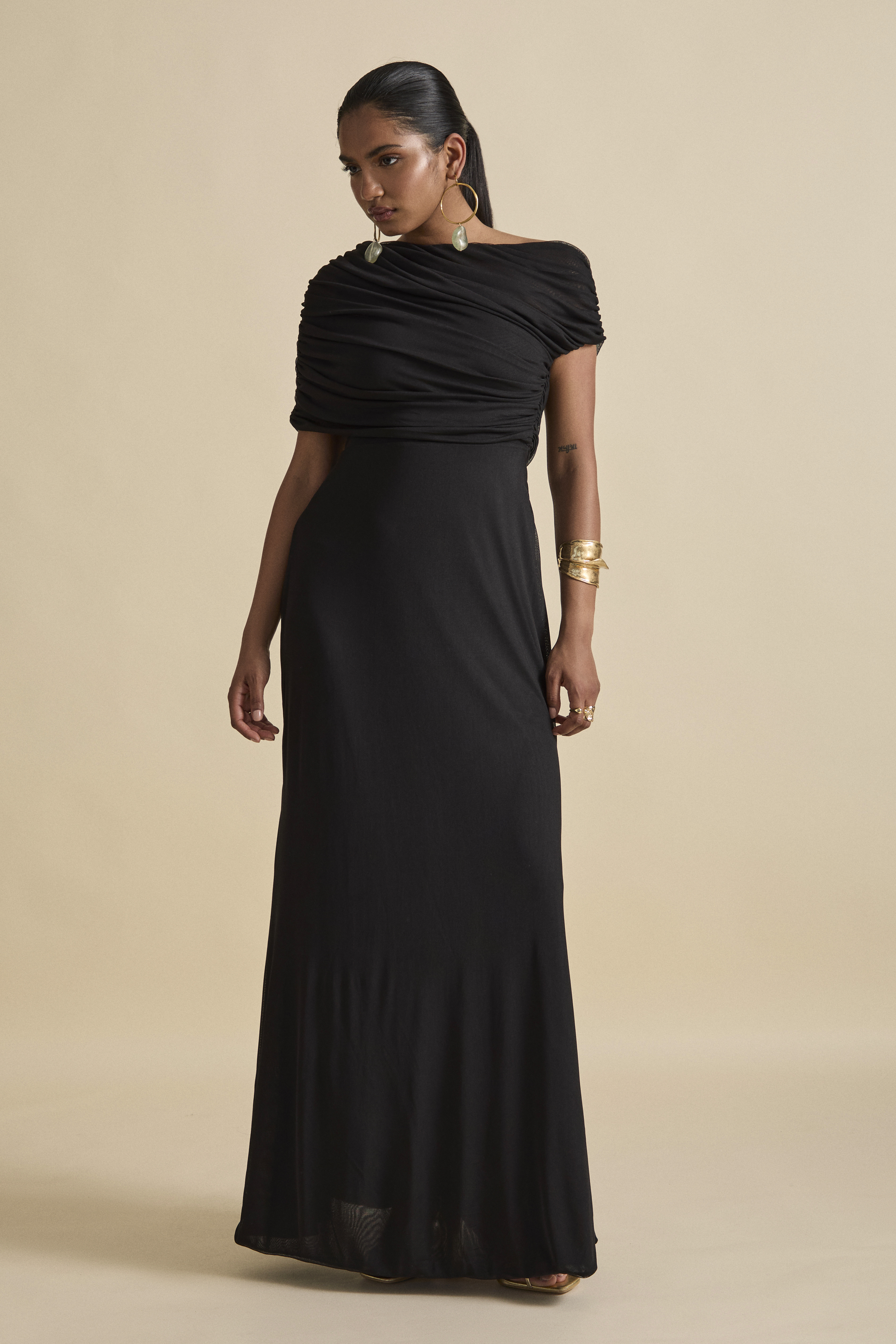 Constructed in locally sourced, premium stretch drape jersey for defined luxury eveningwear.