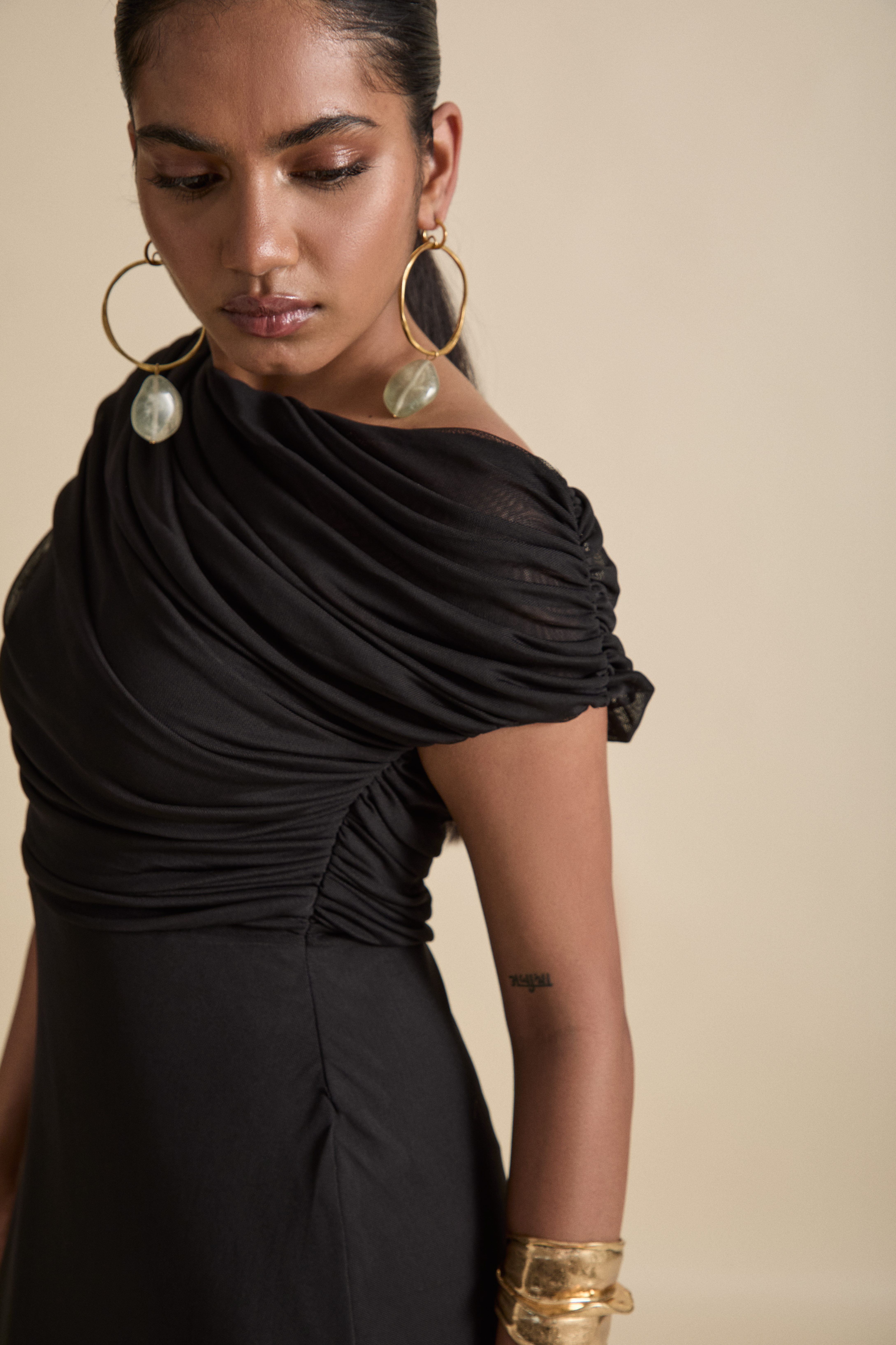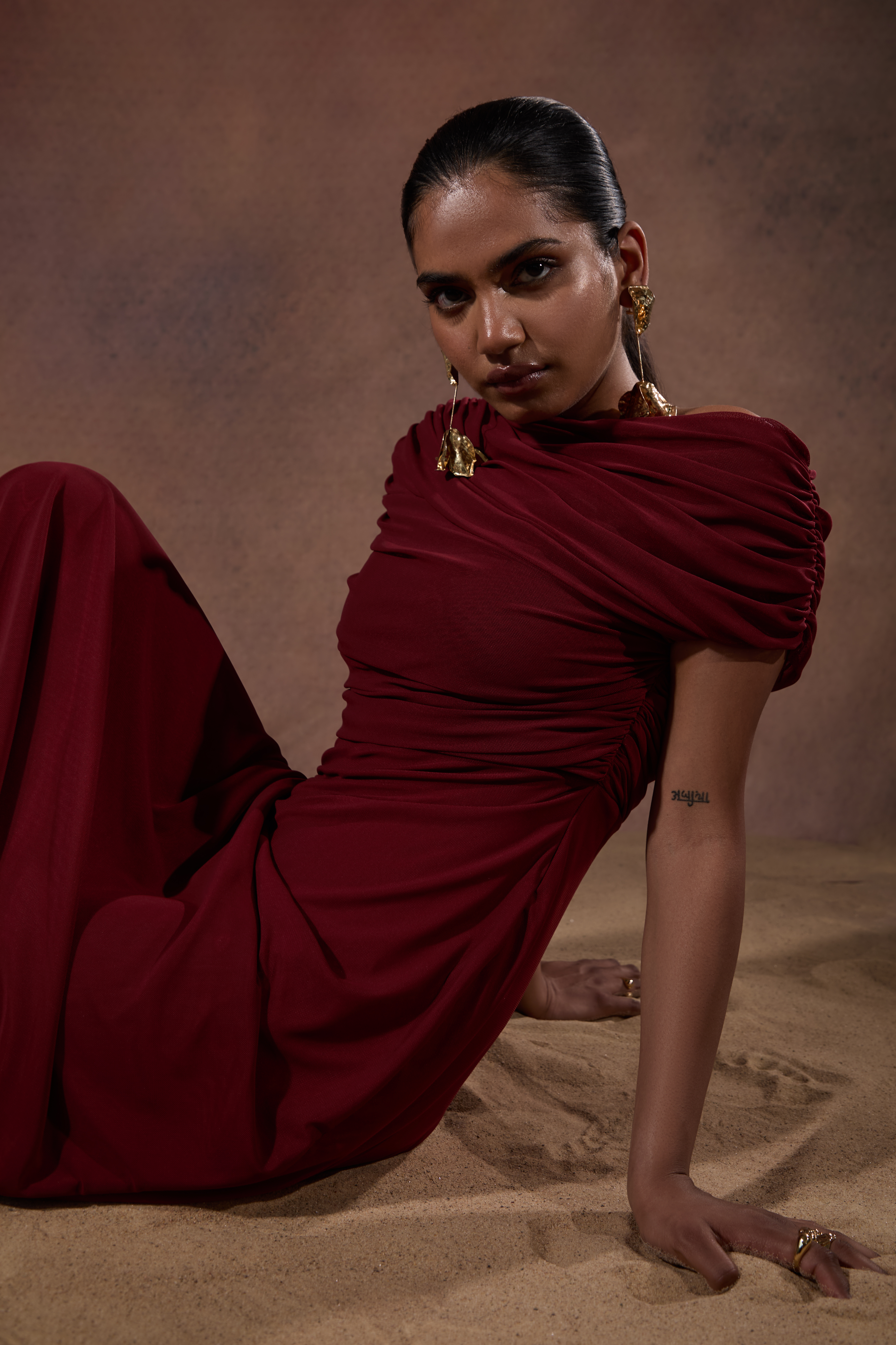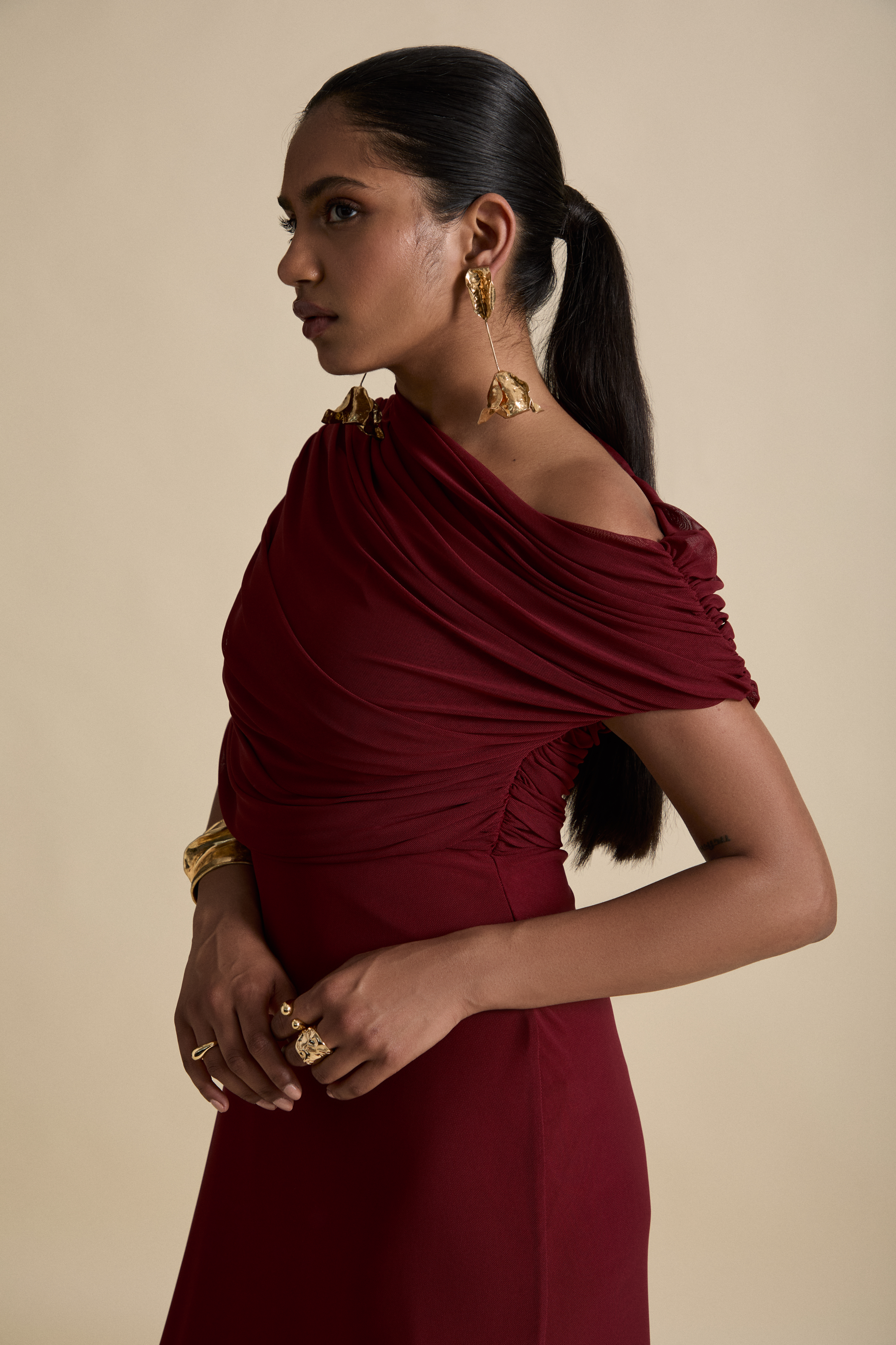 Constructed in locally sourced, premium stretch drape jersey for defined luxury eveningwear.